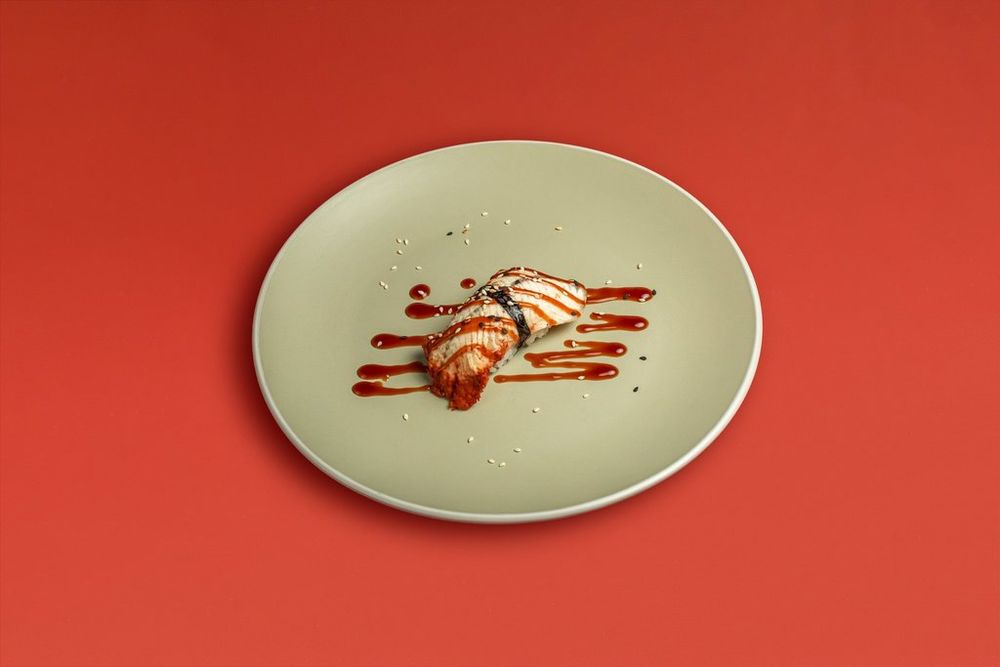 Рис, угорь, соус унаги, кунжут